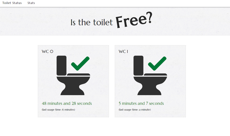 As you can see, it also displays you the total time of the bathrooms is being using and the last usage of time every bathroom (this could be useful for many reasons). The systems is prepared to add more toilets dynamically.