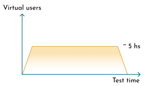 Dado un sistema que se sabe que puede manejar una gran cantidad de carga durante 2 horas, es necesario revisar si es capaz de soportar la misma o una mayor cantidad en caso de que el tiempo aumente a 4 o más horas, ya que debido a un insuficiente espacio de memoria o de número de recursos, puede darse que el sistema colapse o que empeore drásticamente su rendimiento.