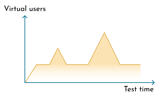 Consiste en someter al sistema a un repentino aumento o disminución de carga. De manera que se pueden obtener conclusiones cuando el tráfico es inestable. Se ha de analizar la manera que tiene el sistema de recuperarse, evaluar el rendimiento (ya sea en mínimos o máximos), también se puede detectar la carga máxima que tiene el sistema, etc.