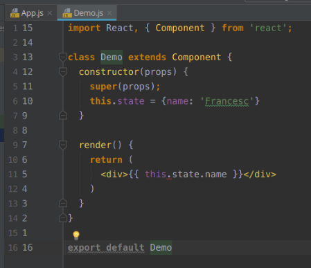 En React vemos que un componente es una clase de ES6, que hereda de Component (también se pueden usar las funciones stateless), y dentro declarar los distintos métodos, como por ejemplo, el render.