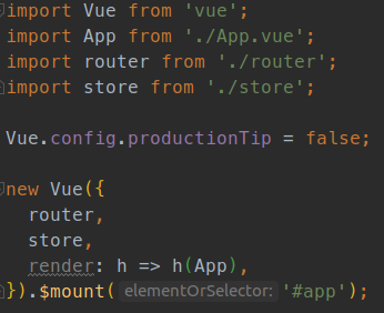 En el caso de Vue es muy similar. Una de las cosas interesantes es que instancia el objecto Vue y permite activar todos los plugins necesarios para nuestro proyecto. Esto nos ha gustado mucho. Sobretodo por la facilidad de activar nuestro store de vuex (luego hablaremos de él).